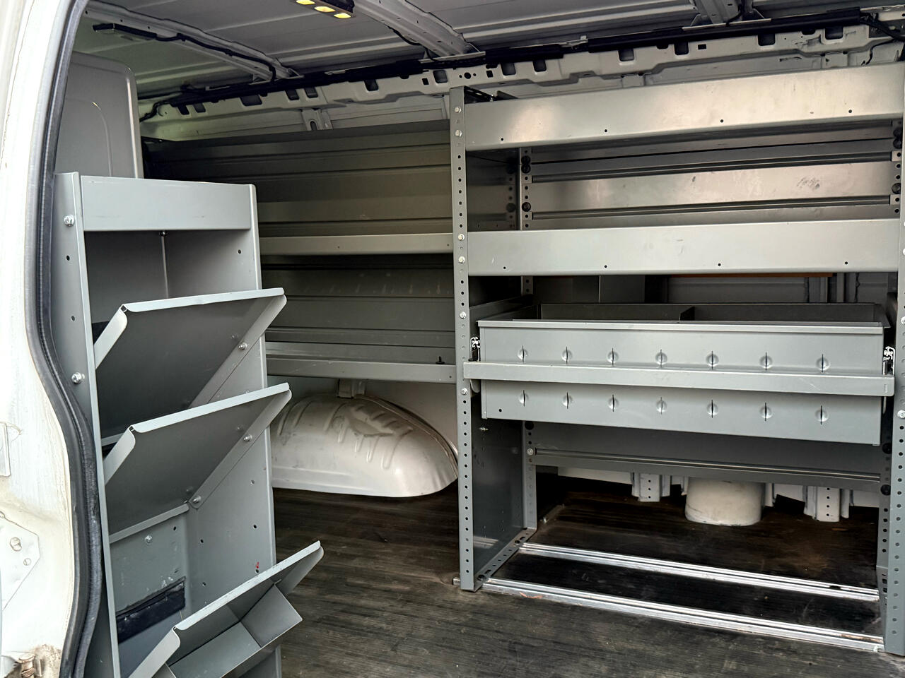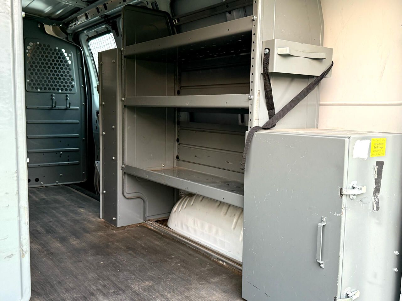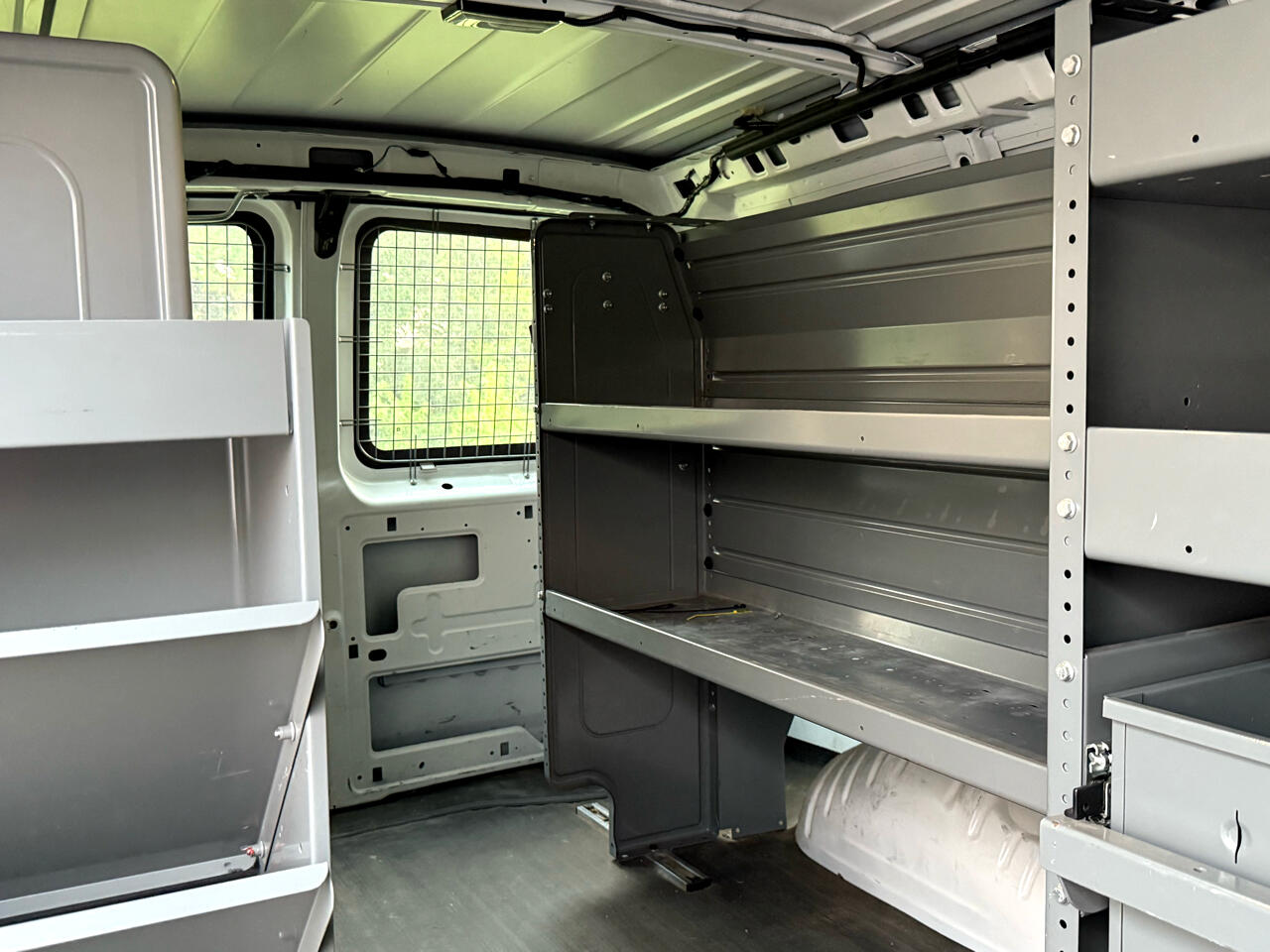 Ladder rack, storage shelves, back-up camera, power windows, power mirrors.