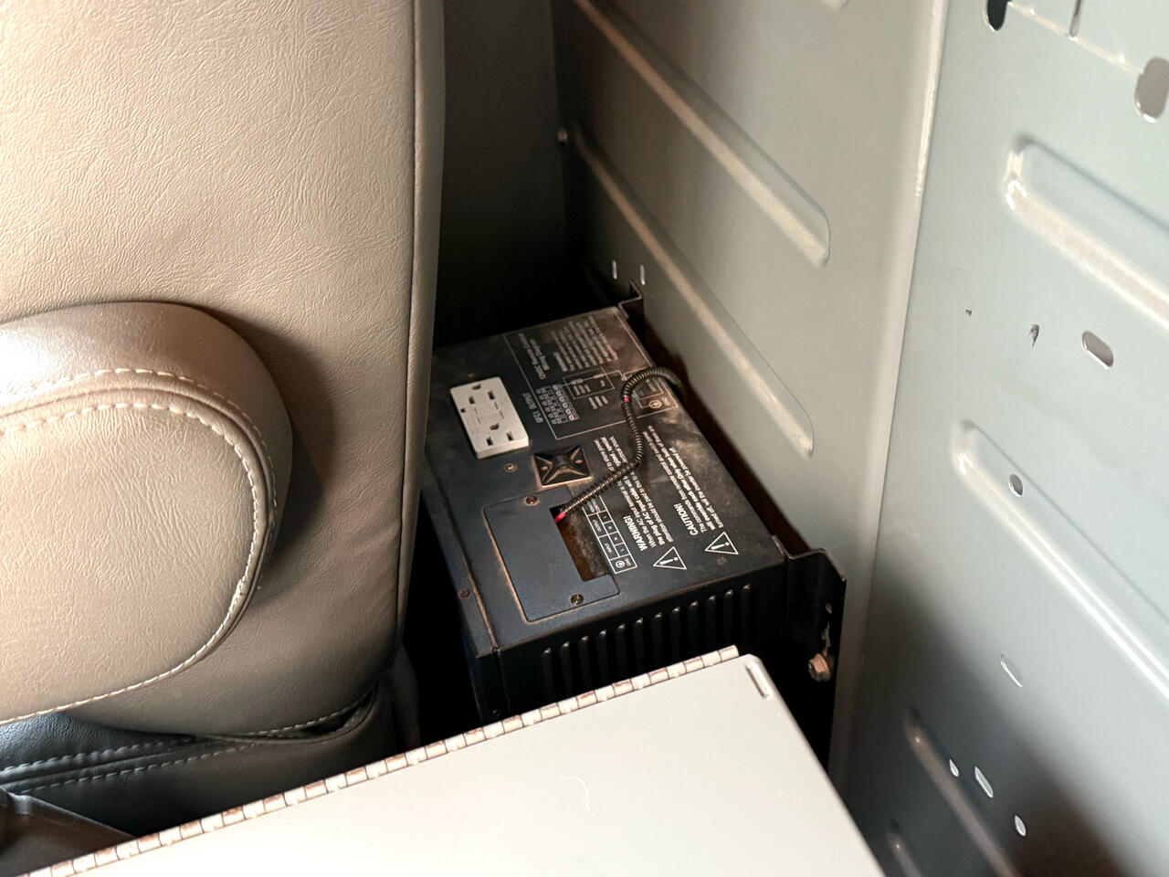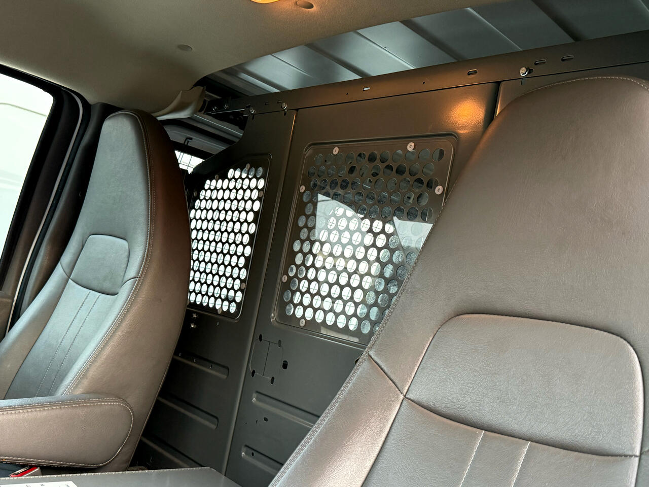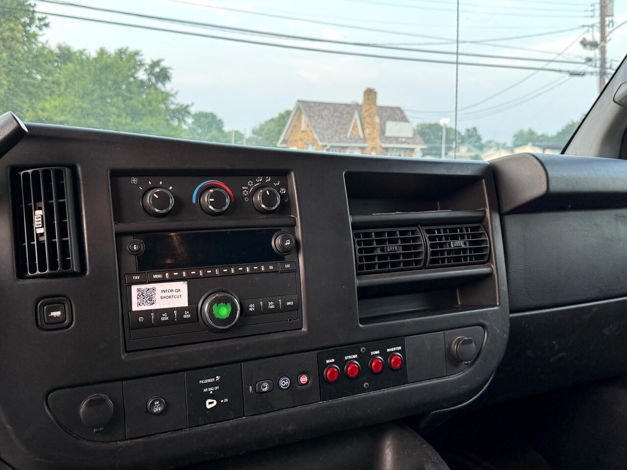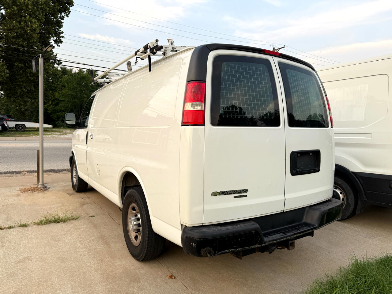 Ladder rack, storage shelves, back-up camera, power windows, power mirrors.